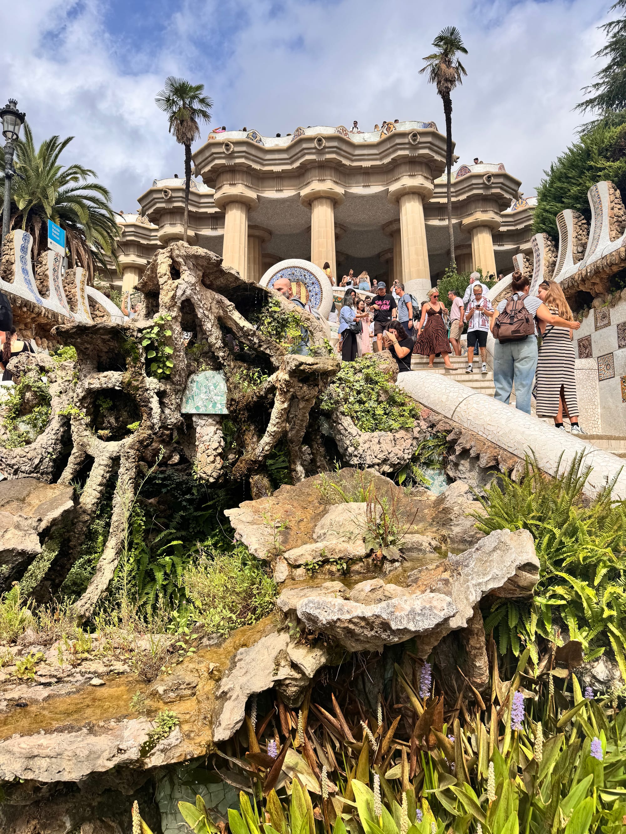 Danach ging es mit der Metro in die Nähe des Parks Güell. Von der Metrostation Lesseps aus sind es trotzdem noch 20 Minuten bis zur Parkanlage. Die Eintrittskarten habe ich vor Ort für 18 Euro pro Person online gekauft. Der Park ist auch ein UNESCO Weltkulturerbe , wurde von Gaudi entworfen und bietet dem Besucher Kunst, Natur und spektakuläre Ausblicke auf Barcelona.