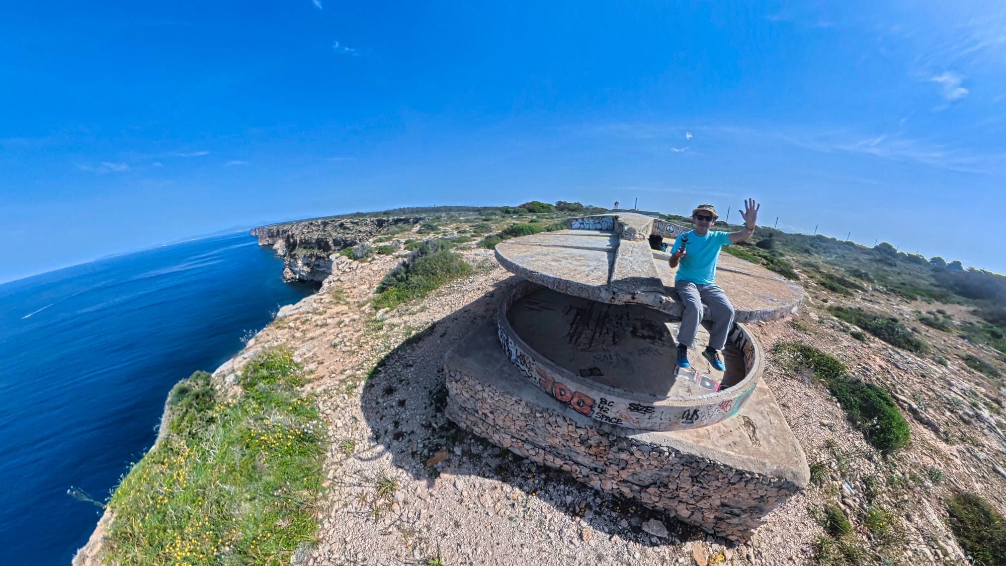 Allein der Blick vom Feuerleitstand aufs Meer rechtfertigte die Anfahrt. Das azurblaue Mittelmeer ließ mich kurz vergessen, dass ich eigentlich nach einer kleinen Plastikdose suchte. Den Cache habe ich gefunden. Ich sage nichts weiter darüber, aber dank des Spoiler-Fotos konnte ich ihn schnell entdecken. Die restliche Zeit habe ich dort mit der Insta360 ein paar Videoaufnahmen gedreht.