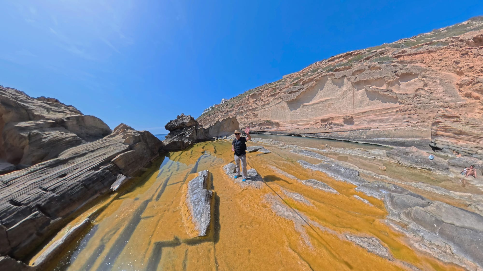 Am Ende meiner Tour bin ich von der Steilküste aus auch noch auf einem Pfad zu diesem Naturbecken hinuntergegangen. Das Meerwasser hatte dort eine ganz besondere Farbe.