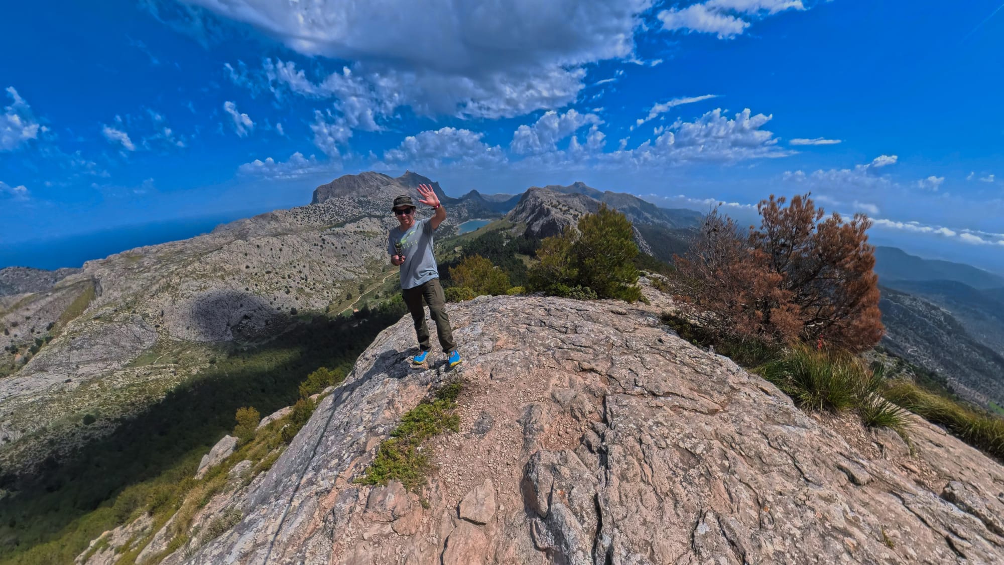 Ein paar Meter weiter musste ich den Fernwanderweg verlassen und verstand, warum das Streckprofil als mittel bis schwierig angegeben ist. Es ging auf einem sehr unübersichtlichen Weg steil hinauf zum Puig l’Ofre. Bei 24 Grad und wolkenlosem Himmel kam ich ganz schön ins Schwitzen und musste zwischendurch immer wieder eine Pause machen. Ich war froh, dass ich 2,5 Liter Wasser dabei hatte und auch die Müsliriegel haben geholfen.